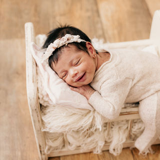 Fotos realizadas em estúdio com o bebê de até 15 dias em um espaço sereno que permite momentos autênticos de conexão.